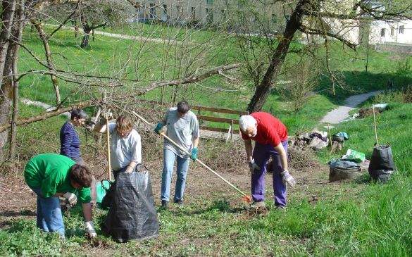 Astscheren, entfernten Äste aus der Wiese und säuberten das