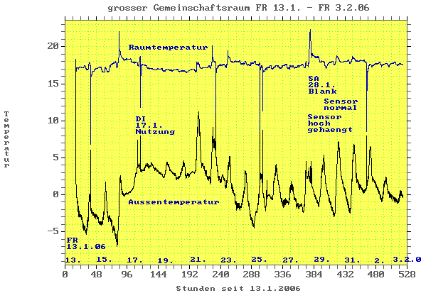 - Es wurden die Innen- und Aussentemperatur gemessen
