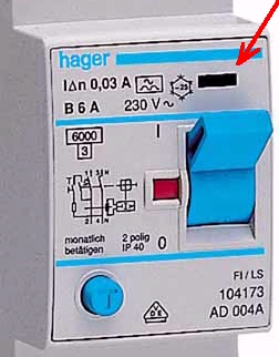 (Roter Pfeil: FI-Indikator,