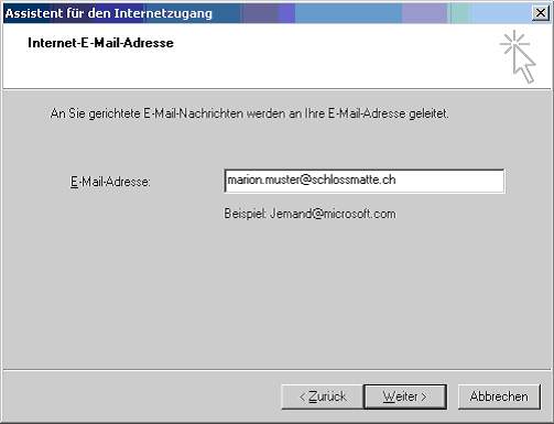 3. Geben Sie Ihre @schlossmatte.ch Adresse ein: