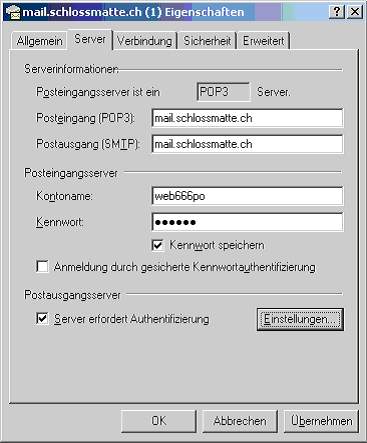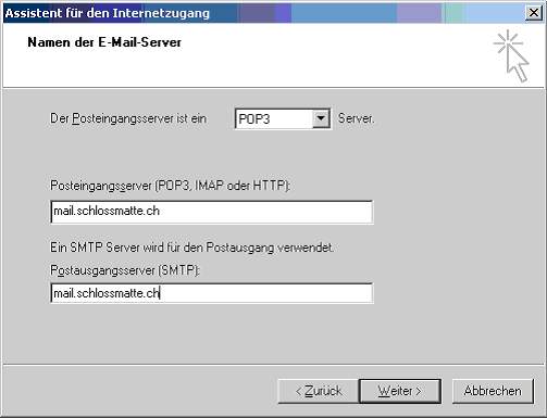 4. Die Posteingangs- und Ausgangsserver heissen mail.schlossmatte.ch: